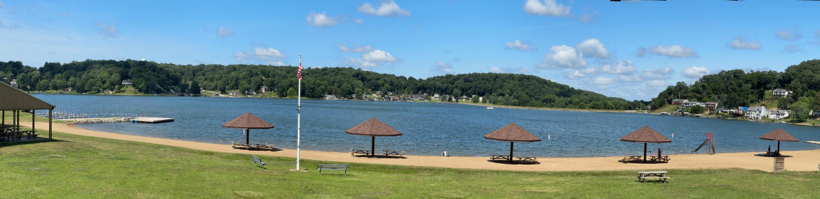 4) Interesting to note is the difference in water clarity and color between Bay 11 and Beacon Lake. It is difficult to tell from this photo however when you first start to drive over the hill going south, you will clearly see that Lake Mohawk is greener in color indicating the different water conditions between the two lakes.