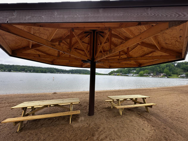 Paul Mickley and his crew have done an excellent job in preparing the beaches and surrounding areas for the summer lake season. Take a look at the amazing carpentry and engineering work that Paul and his crew put into the newly constructed sun/weather protection structures on Main Beach which include all new picnic benches.